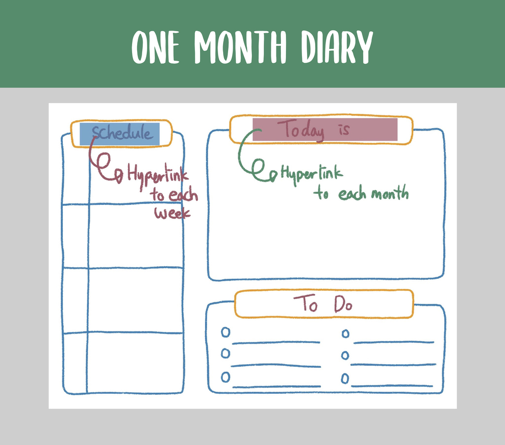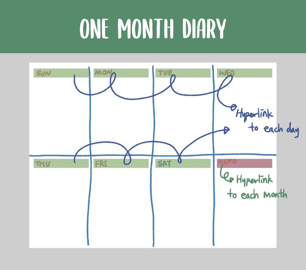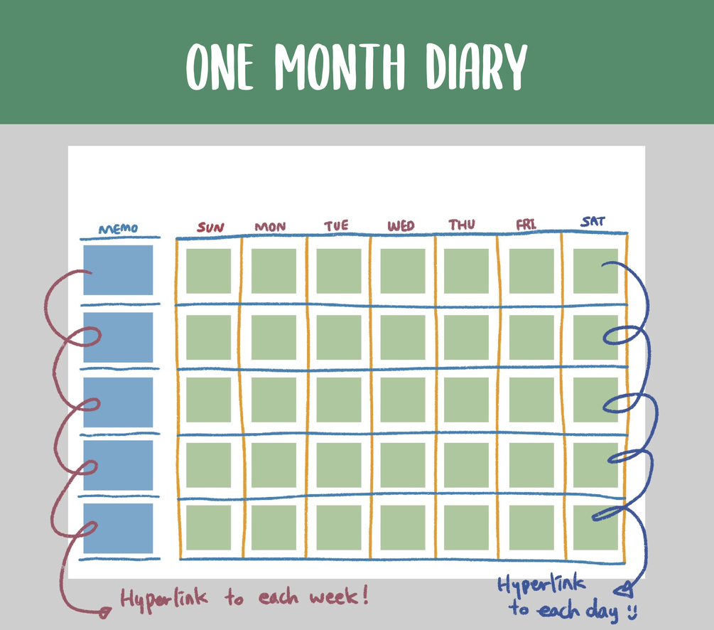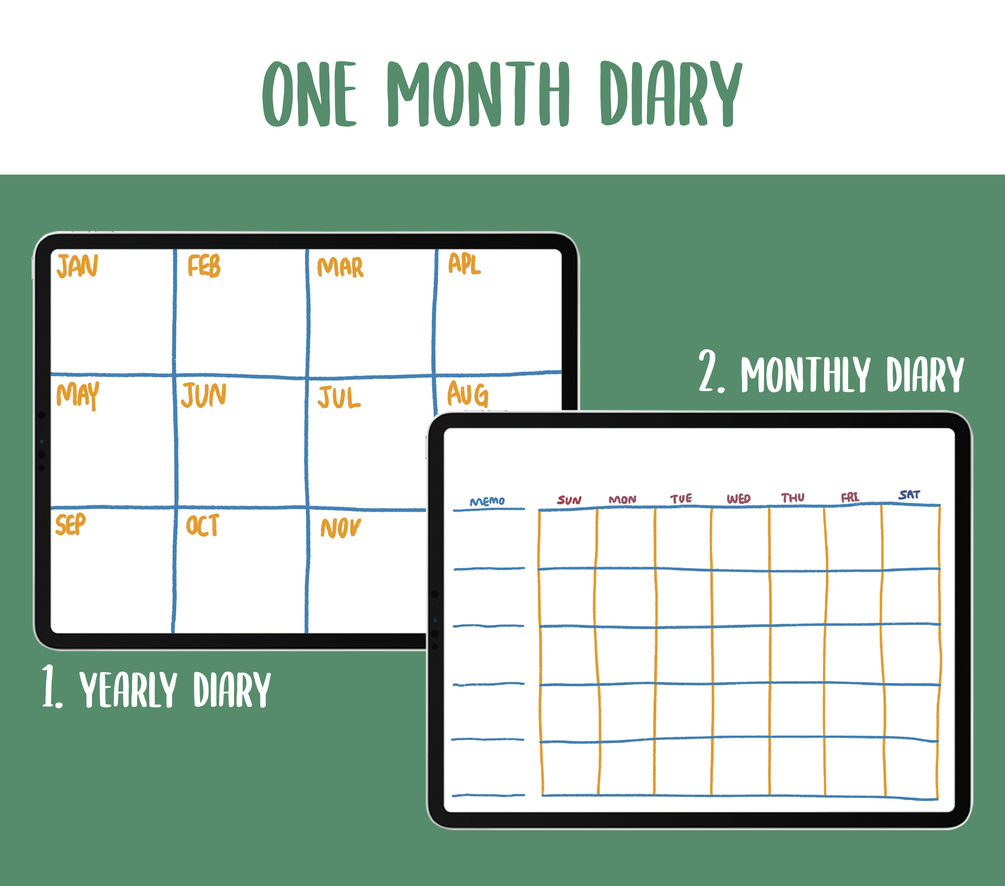 This is one month diary. It doesn't write a date, so if you have the original file, you can use it in a 10,000 years.